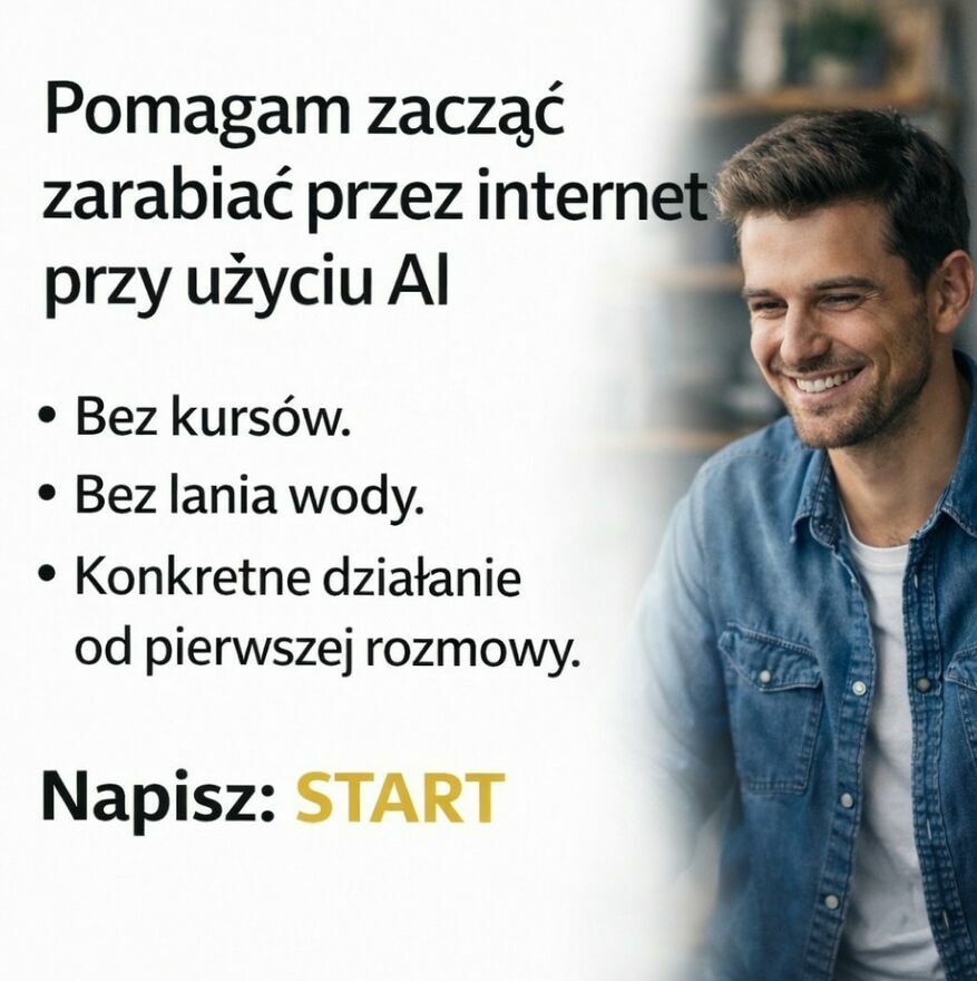 Jeśli masz komputer lub telefon i chcesz nauczyć się używać AI do tworzenia treści, ogłoszeń, postów i prostych usług online — mogę Ci to pokazać krok po kroku.